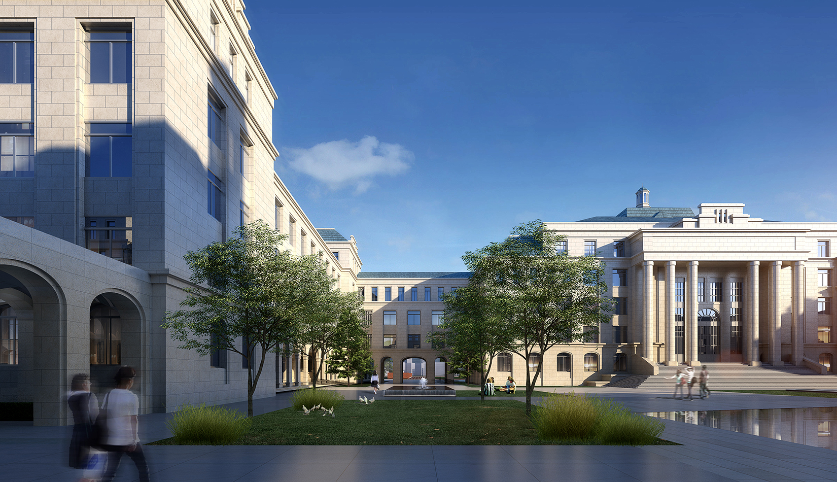 景觀設(shè)計引用了《禮記聘義》中對玉的六大特征:“禮”“知” “樂” “信”“義”“仁”作為景觀主題植入學校各個重要空間。